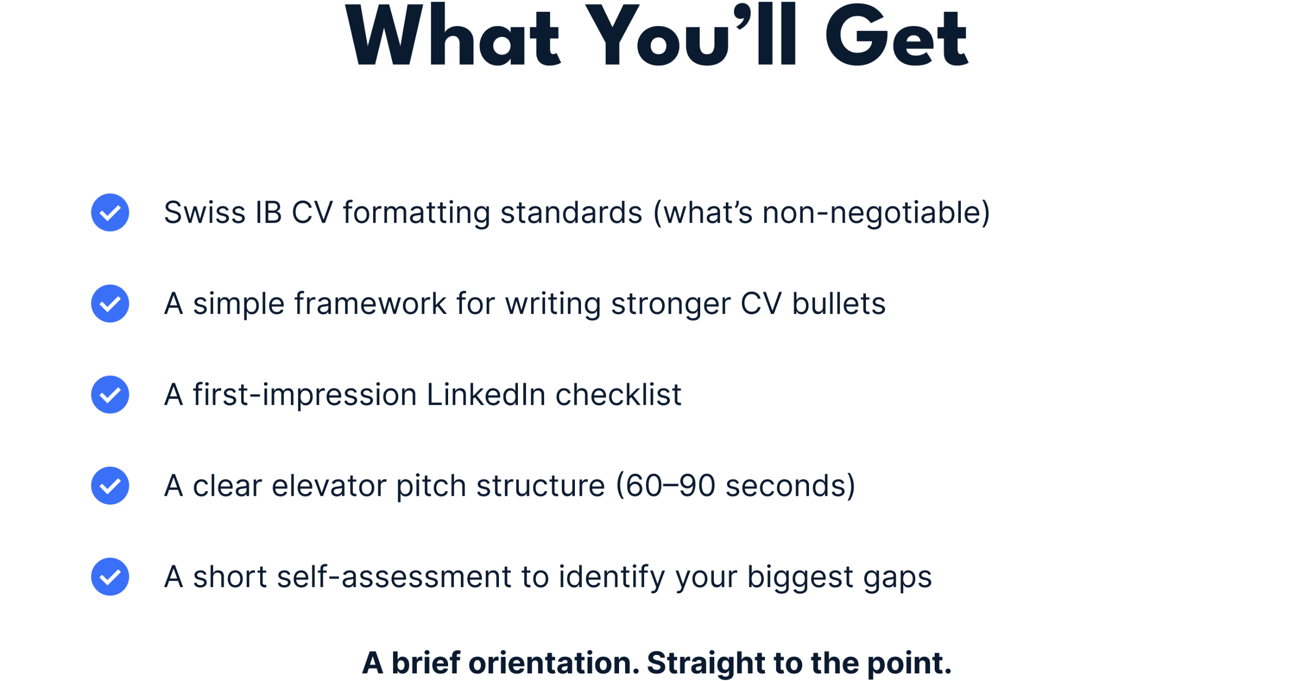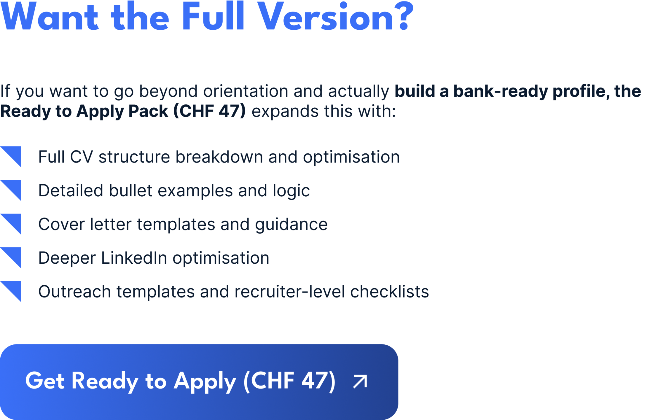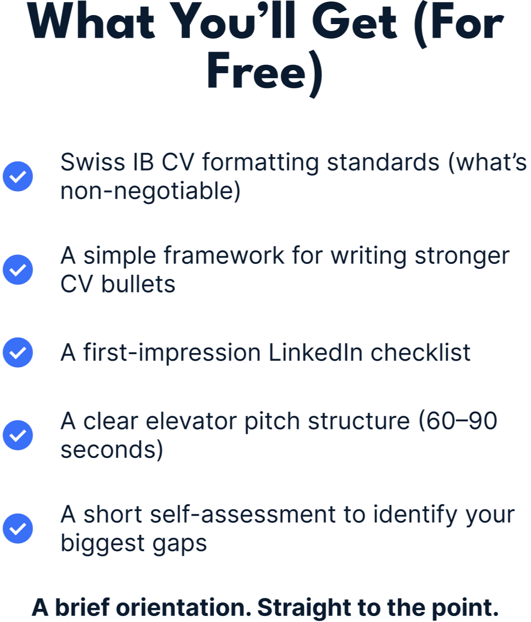 A short, practical starter pack to align your CV, LinkedIn, and pitch with Swiss investment banking standards.